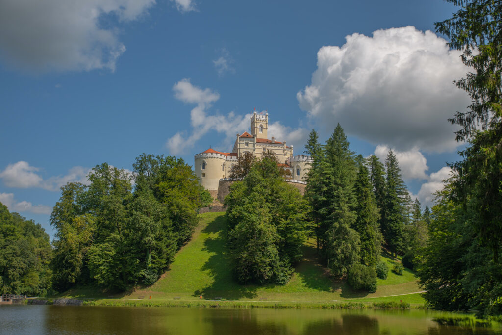 トラコシュカン城の周囲には広大な公園と美しい湖が広がり、19世紀にはロマンチックな景観を持つ城として現在の姿へと整えられました。まるで絵本の世界のような美しい風景が広がり、ヨーロッパの古城ウェディングを叶えたいカップルに人気のロケーションとなっています。挙式の前後には、城内や湖畔でのフォトウェディングも楽しめる特別な場所です。